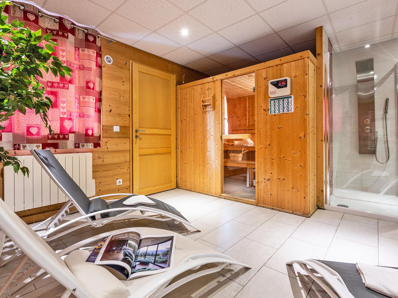 cuisine ouverte vers le séjour (lave-vaisselle + réfrigérateur avec congélateur + cuisinière à gaz + four + micro-onde + cafetière + machine à café à capsules Nespresso Vertuo + bouilloire électrique + 2 appareils à raclette + 2 services à fondue); jacuzzi; sauna; poêle; télé satellite avec écran plat; lecteur DVD; wifi gratuit; 2 balcons; local à ski; sèche-chaussure de ski électrique; lave-linge