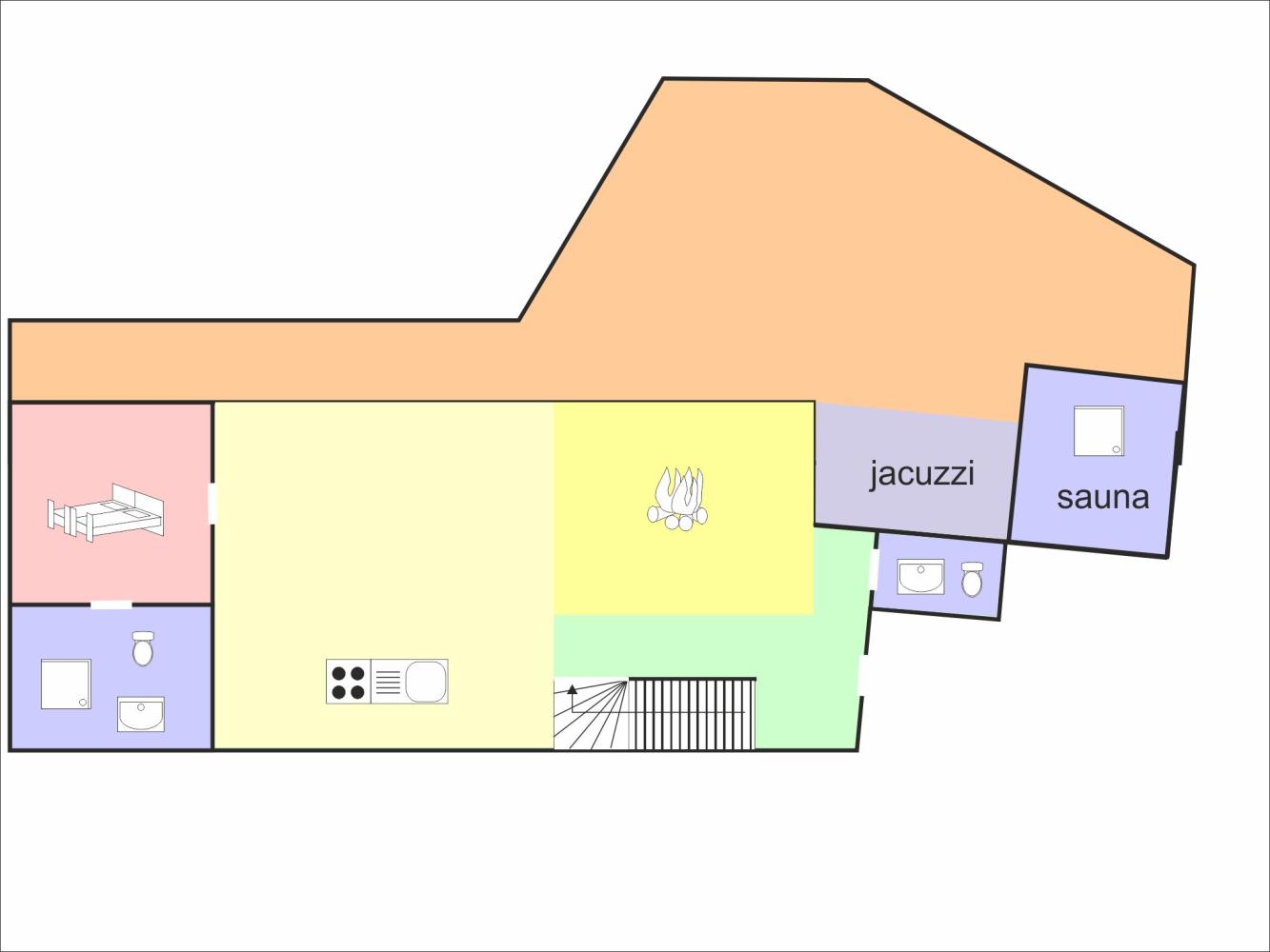 Le chalet exclusif offre deux chambres et deux salles de bain/WC au rez-de-chaussée. Au niveau 2, se trouve le salon spacieux et la salle à manger conviviale, avec la grande table pour réunir 10 personnes confortablement. La cuisine est équipée de façon moderne et très complète. Au même niveau, il y a une chambre double avec une salle de bain/WC. Deux autres chambres avec une salle de bain/WC sont situées au niveau 3. Chaque chambre est équipée d'une Sat-TV individuelle ; tous les lits sont 2 m en longueur.