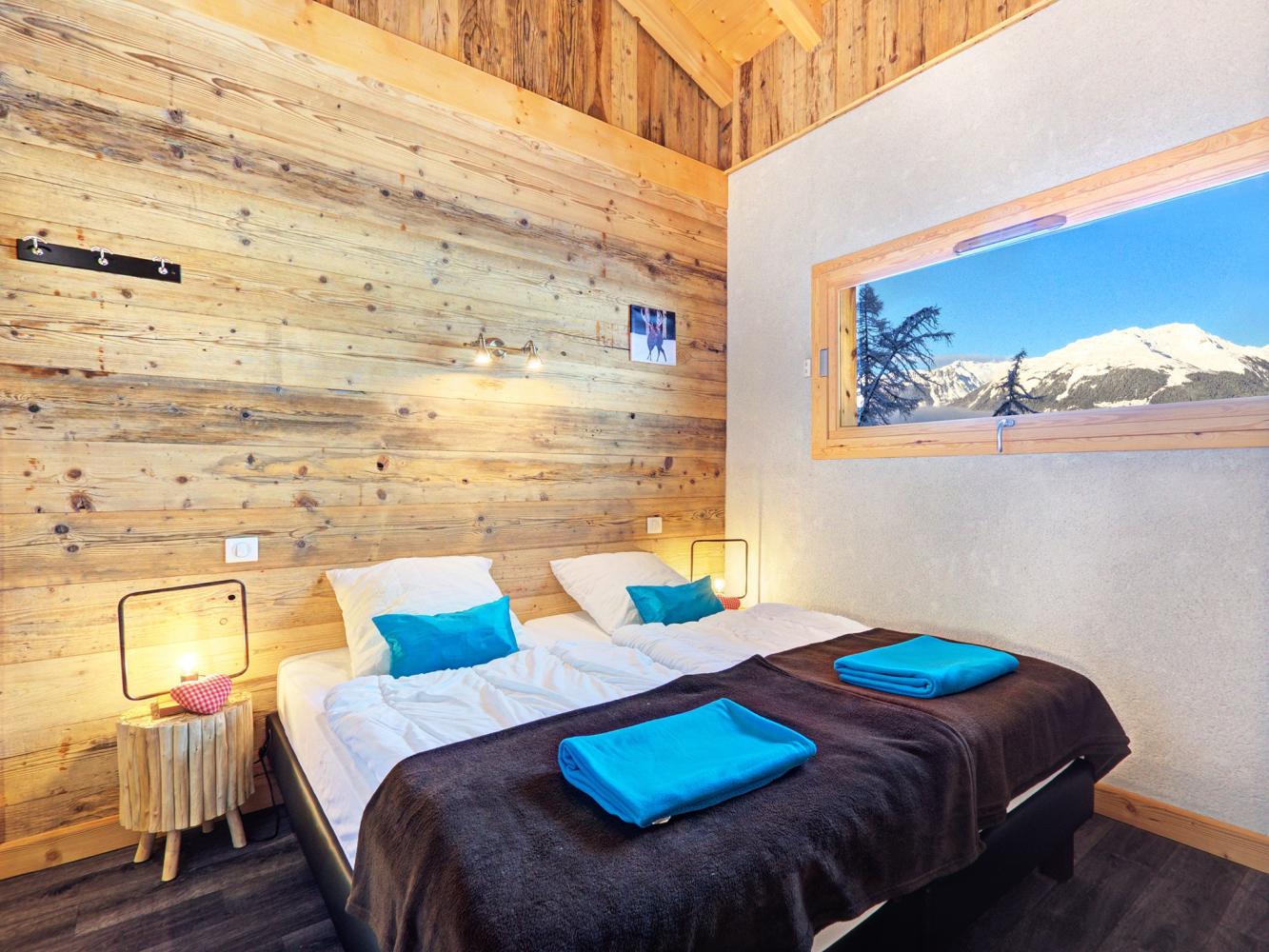 Il s'agit d'un chalet mitoyen, sur les images à droite vu du côté balcon/terrasse ; le chalet attentant Paradise Star pour 12 personnes – sur la gauche – est également louable.