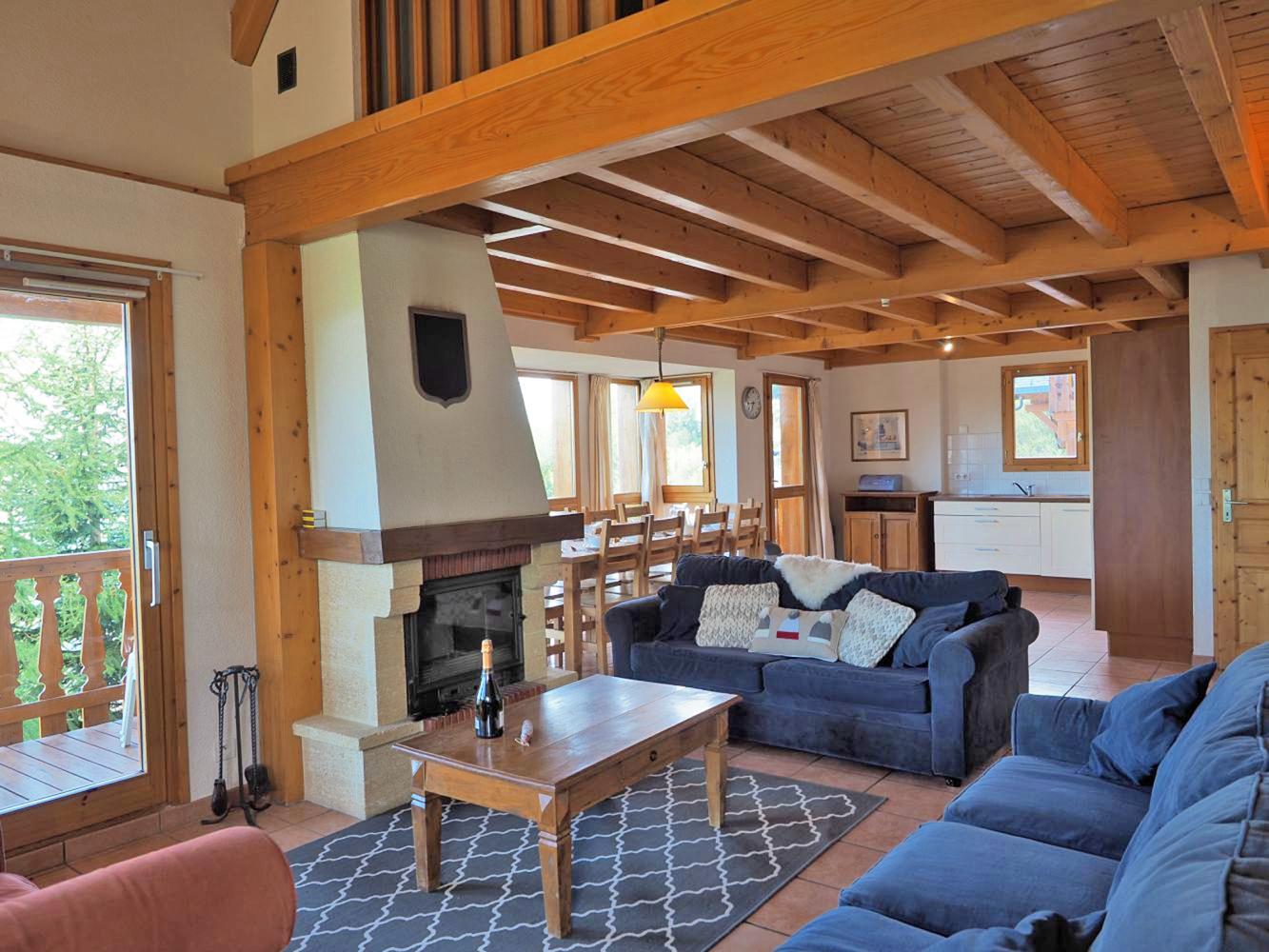 cuisine ouverte vers le séjour (lave-vaisselle + réfrigérateur + quatre plaques + four + micro-onde + cafetière + bouilloire électrique); cheminée; TV-satellite; wifi gratuit; lave-linge; sèche-linge; balcon; casier à ski
