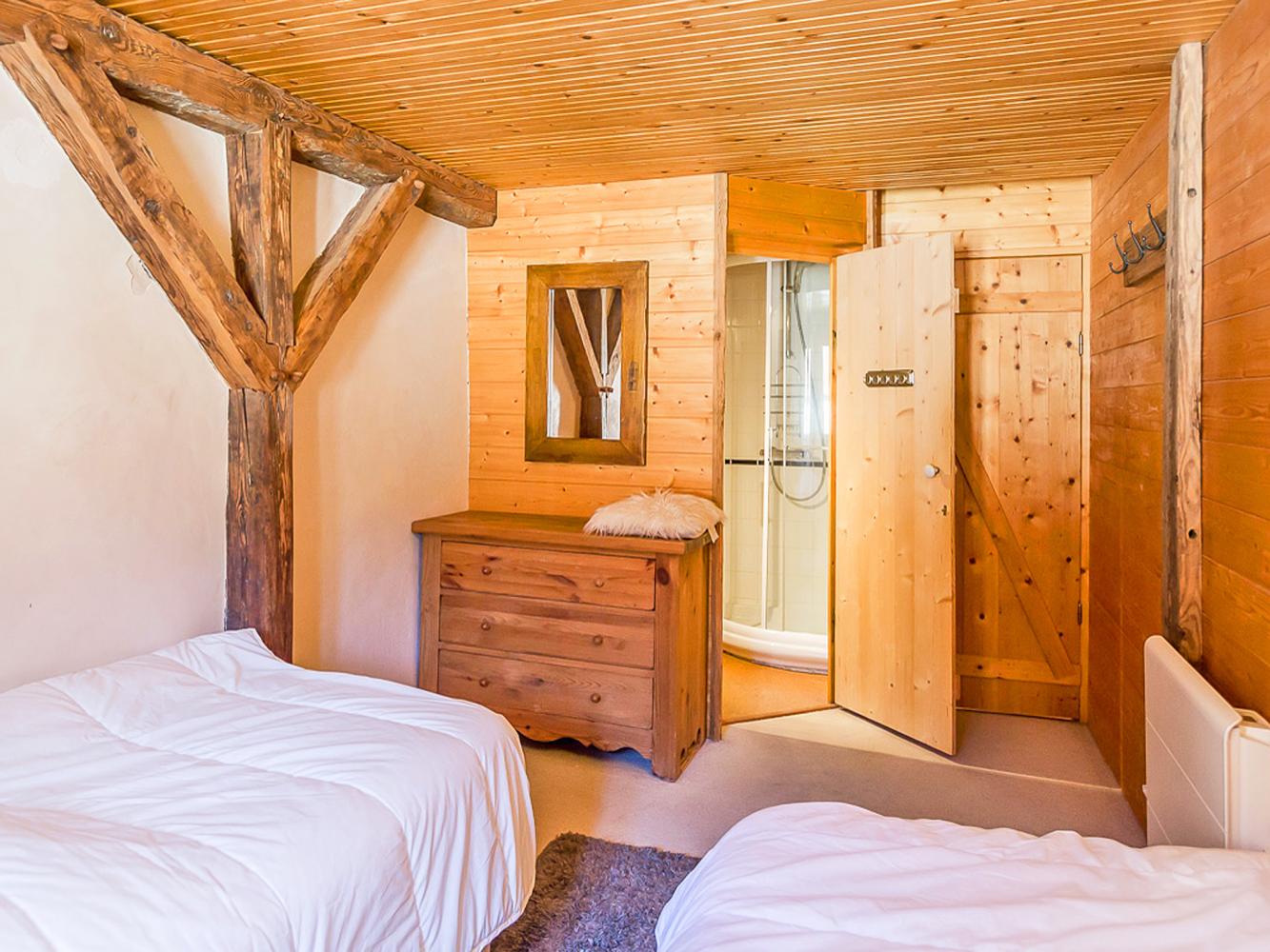 Au premier étage, prenez l’air sur le balcon et retrouvez une belle pièce de vie donnant sur les massifs de la Plagne et de Bellecôte, ainsi qu’une superbe vue sur la vallée encaissée de la Tarentaise. Rassemblez jusqu’à 12 convives autour d’une grande table de bois massif, et cuisinez des spécialités locales grâce à une cuisine toute équipée, dont une cuisinière à 6 feux. Accédez également à deux chambres, l’une se composant d’un lit double et l’autre de 2 lits simples – chacune ayant sa propre salle de bain.