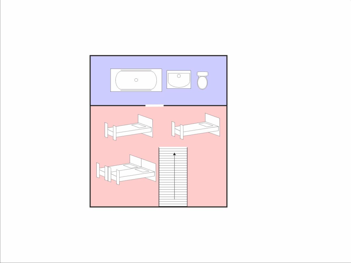 Au niveau 4 il y a une chambre sous le toit pour 4 personnes, avec lit double et deux lits simples, ainsi qu'une salle de bain en suite avec baignoire et WC.
