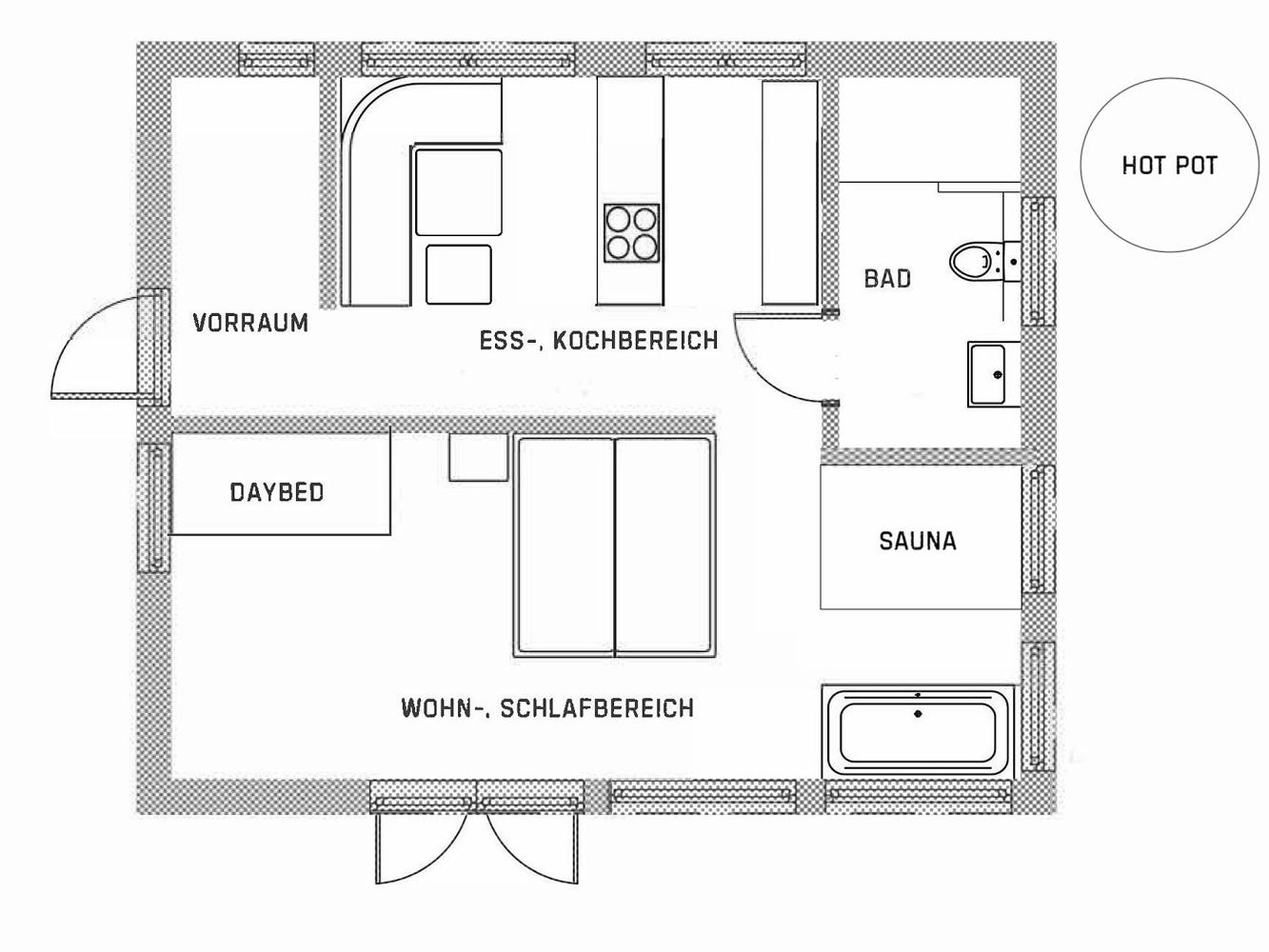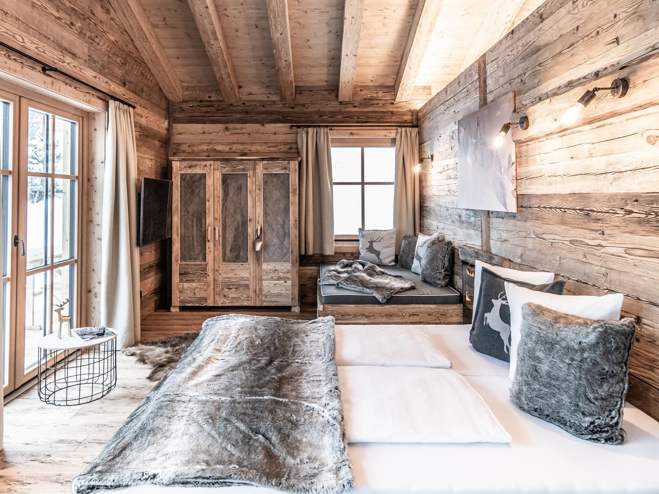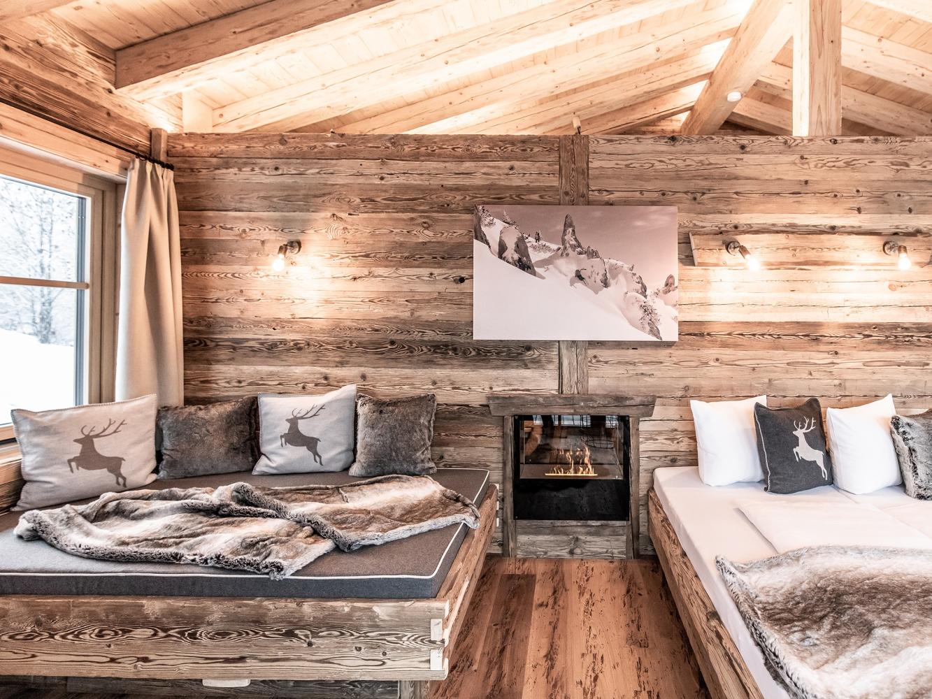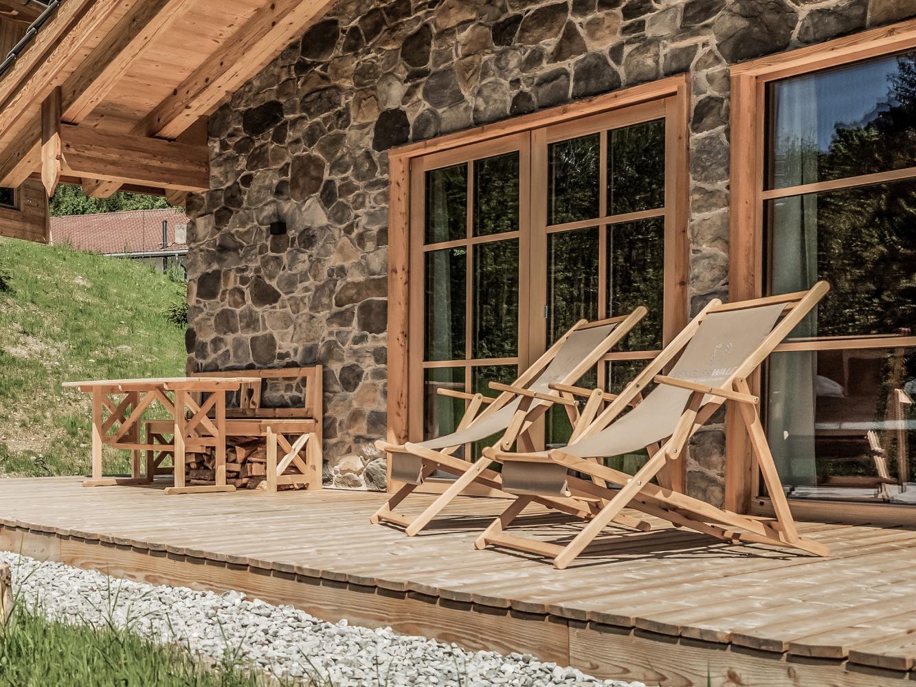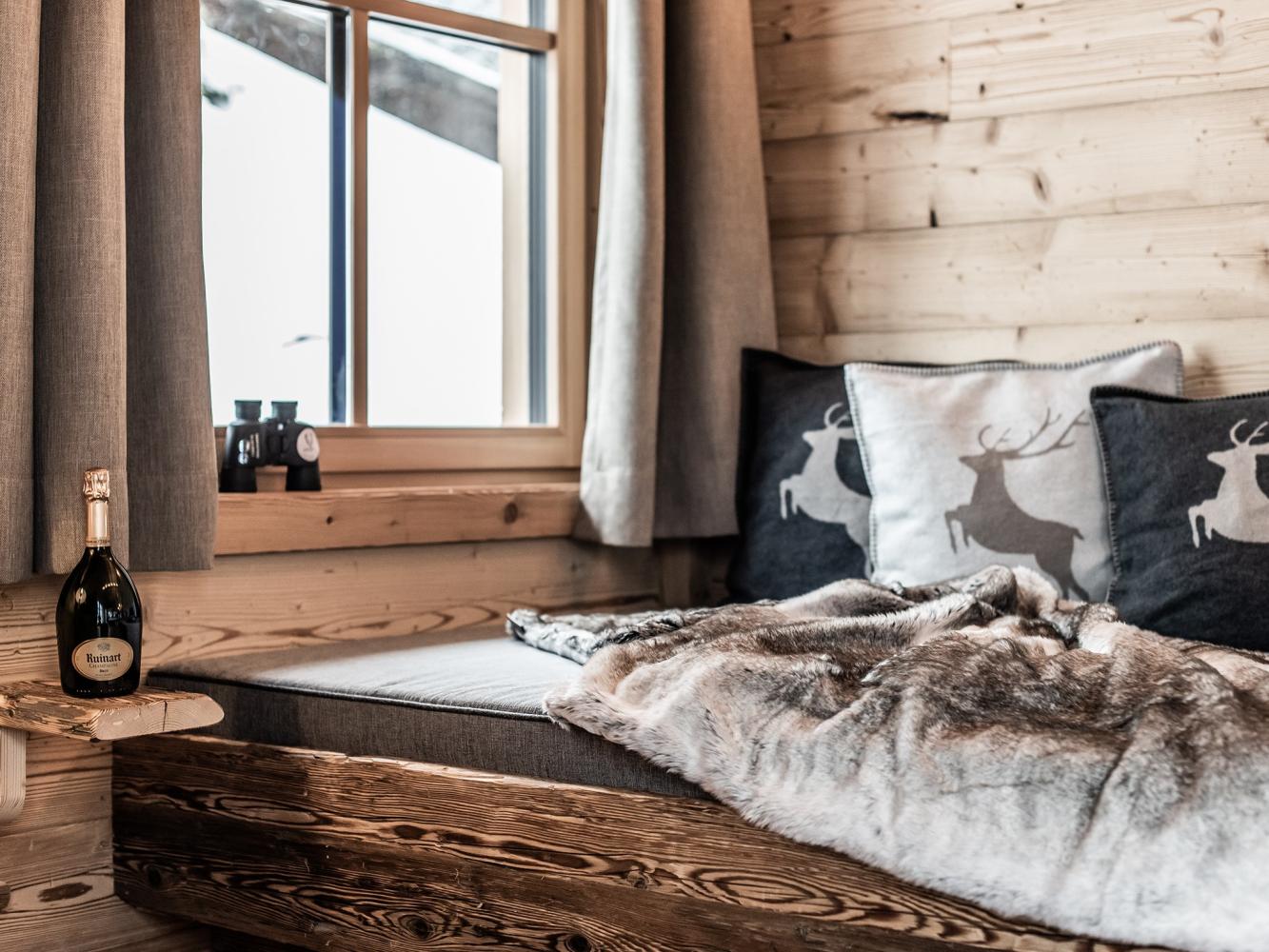 Dans l'espace de vie et de sommeil lumineux se trouvent un lit double (180 x 200 cm) ainsi qu'un lit de jour (120 x 200 cm). Les fenêtres panoramiques offrent une vue magnifique sur les montagnes et la vallée. Le chalet dispose d'une télévision à écran plat Smart, d'un Ipad avec système de sonorisation Sonos, d'un Suitepad avec des journaux et des jeux actuels ainsi que d'une collection de jeux de société. L'espace cuisine et salle à manger ouvert avec cuisine entièrement équipée invite à passer des soirées de chalet agréables. Une sélection de boissons non alcoolisées, de bières, de vins et de champagnes est disponible (moyennant un supplément). Appareil à raclette, set à fondue, mixeur peuvent être empruntés gratuitement sur place. Vous pouvez vous détendre dans l'espace SPA avec sauna finlandais, baignoire, douche bien-être intérieure et hot pot extérieur. Ce dernier se remplit d'eau de source de montagne chaude sur simple pression d'un bouton. Des peignoirs et des serviettes sont mis gratuitement à disposition. De plus, un kit de fitness (composé d'un ensemble d'haltères compacts et d'un tapis de yoga) est disponible sur demande. Profitez de la nature sur la grande terrasse ensoleillée avec des chaises longues et votre propre bac à barbecue LaKra. Des jumelles sont également à votre disposition.