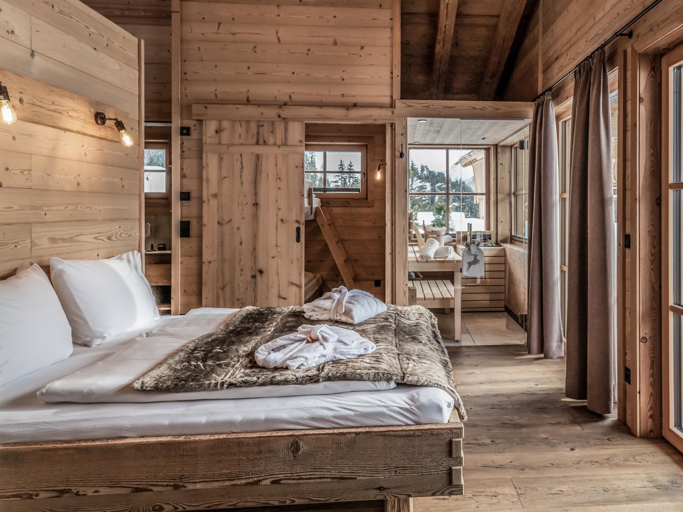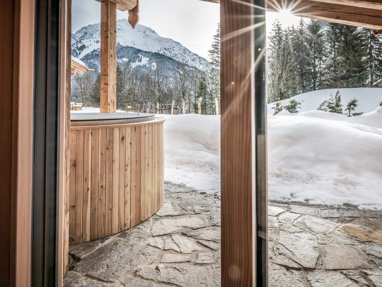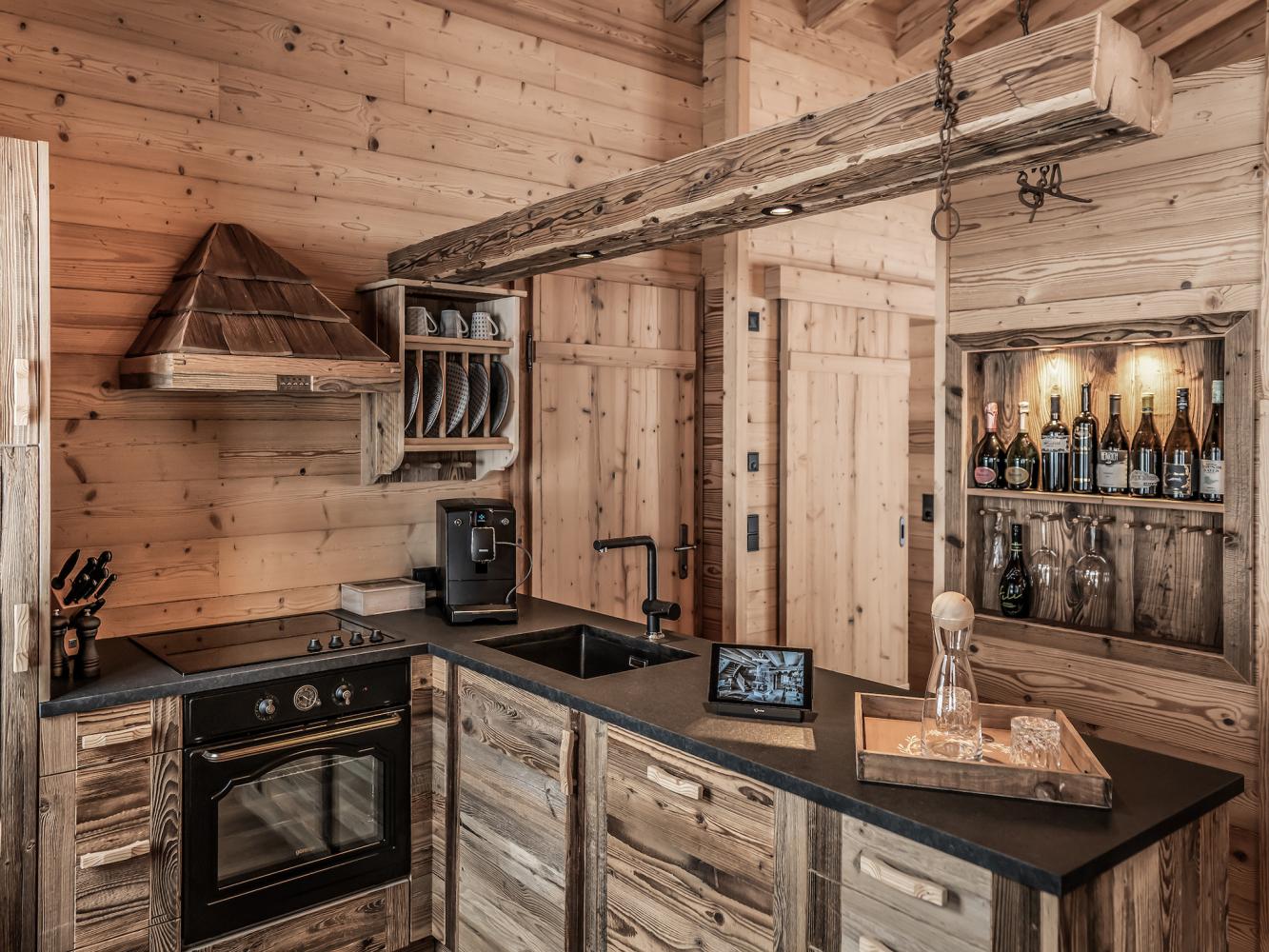 L'ameublement haut de gamme et les détails soignés créent une qualité de vie exclusive et confortable. Petit déjeuner au chalet : chaque jour, un petit déjeuner fraîchement préparé vous est apporté au chalet, composé de produits régionaux et d'autres délices. Servez-vous dans le riche assortiment de thé ou préparez-vous de délicieuses spécialités de café avec la machine à café exclusive NIVONA.