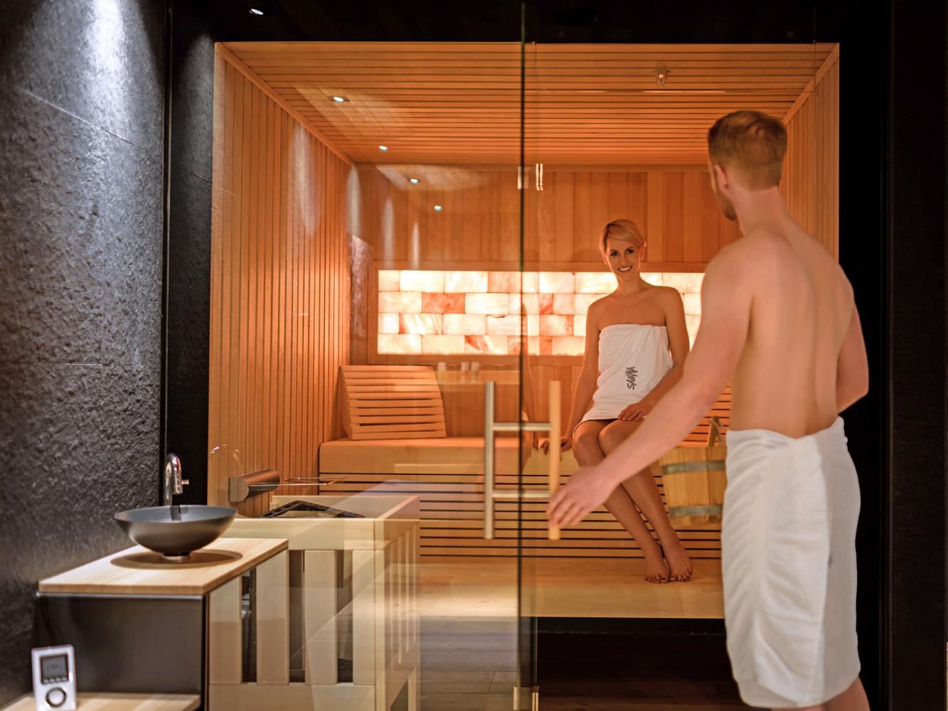 Im Erdgeschoss befinden sich zwei Schlafzimmer mit eigenem TV, integriertem Bad (Regendusche oder Badewanne) und separatem WC. Erholung pur bietet der Spa-Bereich mit Sauna, Regendusche und großer Ruheliege am Kamin. Saunatücher und Bademäntel werden kostenfrei zur Verfügung gestellt; Wechsel einmal pro Woche auf Anfrage möglich (gratis). Im Eingangsbereich befindet sich zudem der eigene Skischuhtrockner und ein Bereich für die Ski.