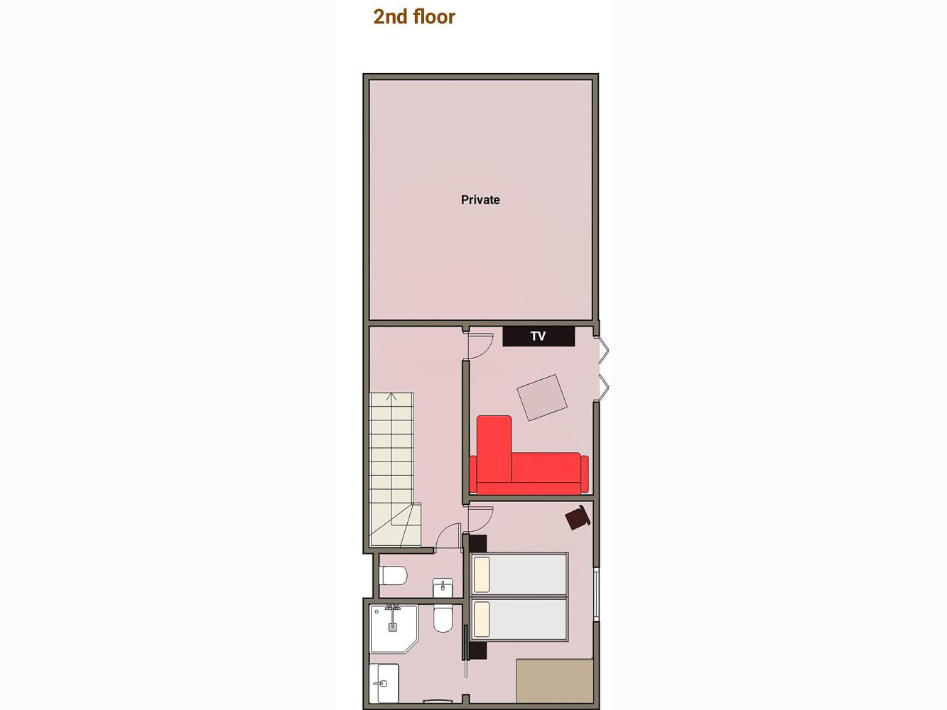 Au deuxième étage, salon télé avec une smart TV, permettant de profiter d'un temps calme, de jeux ou regarder un film. Vous y trouverez les 2 autres chambres avec deux lits simples (rapprochables) et leur salle de bain privative en suite. Un WC séparé vient compléter cet étage.