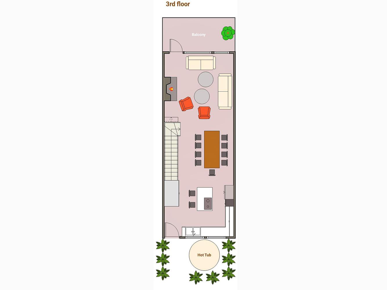 Au troisième étage, se trouve la cuisine ouverte équipée de façon moderne et très complète, l'espace repas et le salon, le tout réchauffé par une véritable cheminée à bois. Les grandes baies vitrées donnent accès à la terrasse, où vous pourrez profiter d'un moment de détente dans le hot tub extérieur ainsi que d'une vue imprenable sur les montagnes. Une autre entrée du chalet se trouve à cet étage.