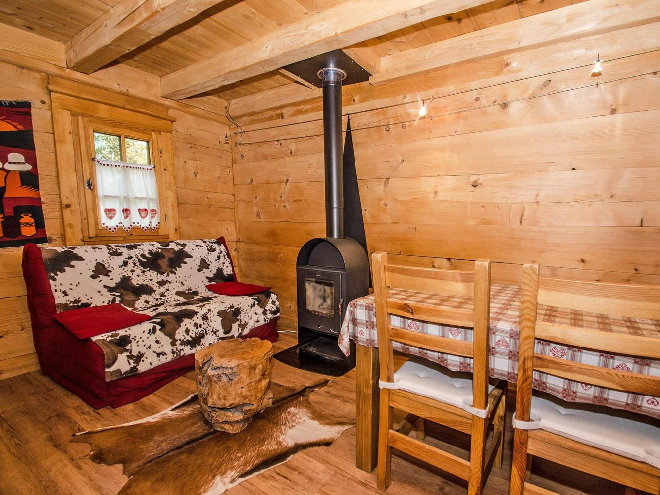 Un petit chalet en bois équipé de tout le nécessaire.