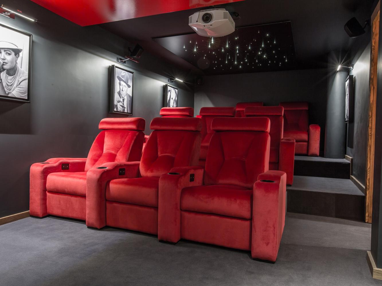 Rez-de-chaussée : Spacieux espace spa, avec coin lecture, table de massage et coin thé. Le home cinéma invite à des soirées cinéma passionnantes avec son projecteur de dernière génération et un son Dolby 5.1, des fauteuils confortables (réglables électriquement) et une chaise longue. Différents modules de streaming (par exemple Netflix, canal Sat, canal), Apple TV et une console de jeux vidéo sont disponibles.