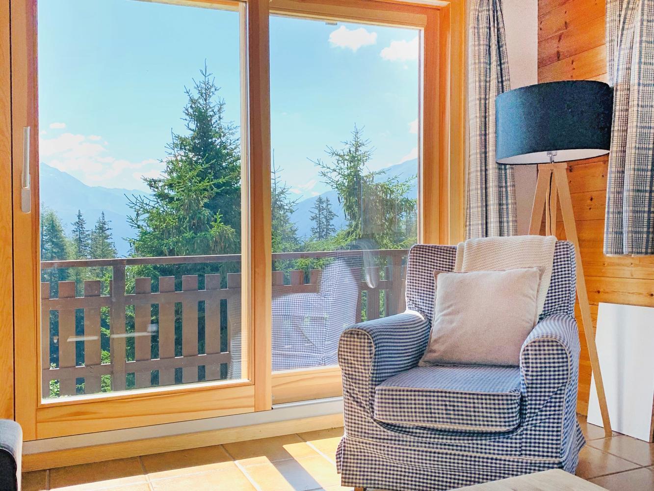 Au rez-de-chaussée se trouve le salon lumineux et confortable avec coin cheminée. Idéal pour se détendre après une longue journée de ski ou de randonnée. Un escalier mène à la mezzanine / galerie avec canapé et coin lecture. La cuisine ouverte vers le séjour est bien équipée ; elle dispose d'une cafetière Jura. Accès direct au balcon spacieux. Vue magnifique sur les Alpes Valaisannes avec le Val d'Hérens et le quatre mille de la Dent Blanche.