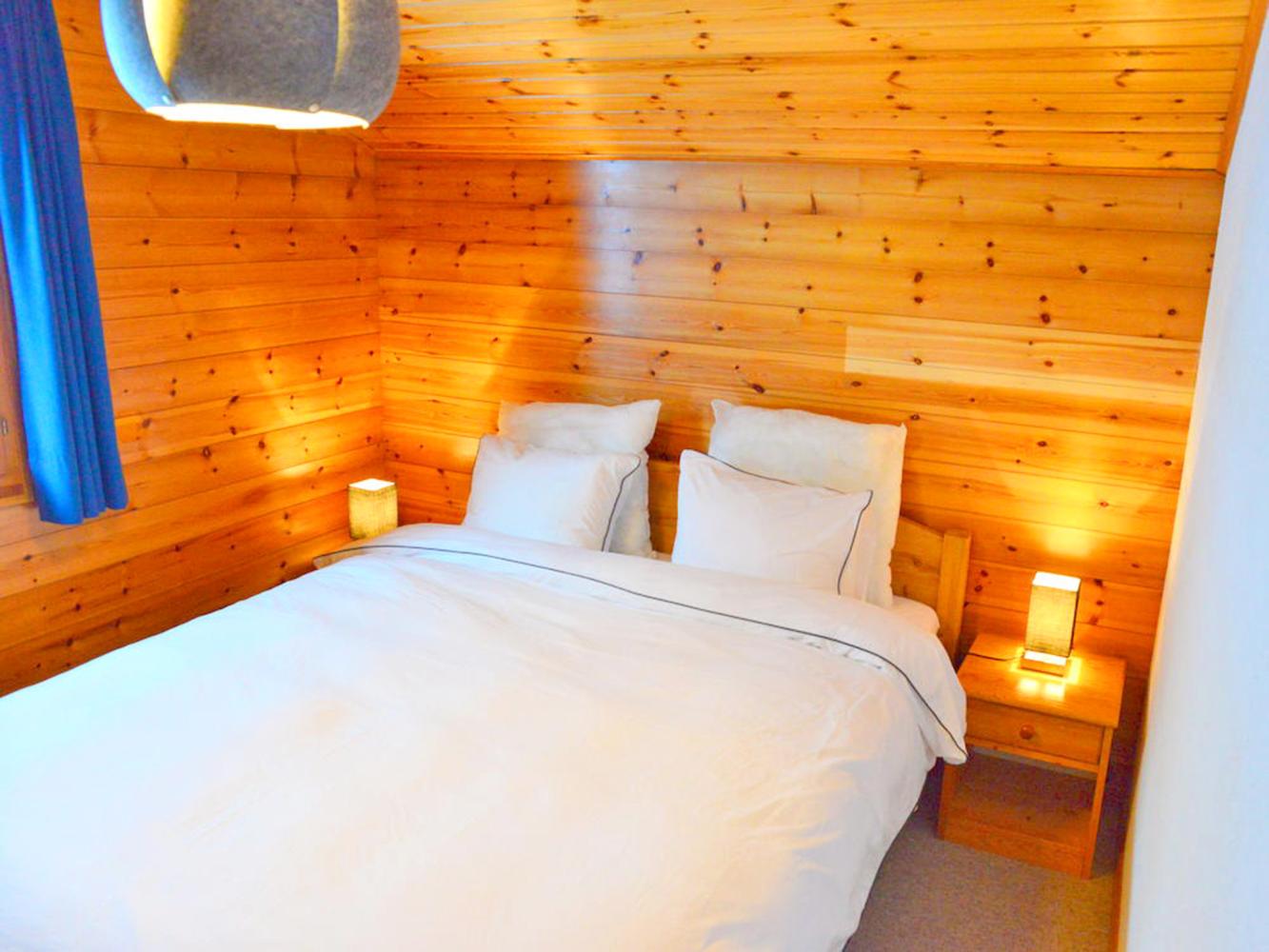 L'étage supérieur comprend une chambre avec deux lits simples rapprochables (200 × 90 cm), une chambre avec lit double (200 × 160 cm), une salle de bain avec douche et WC ainsi qu’une terrasse et un balcon orienté sud-ouest.